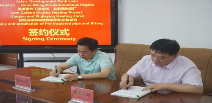 7月7日上午,內蒙古呼和浩特市低碳供熱亞行貸款項目呼和浩特市城發(fā)投資有限責任公司金橋、辛家營(yíng)區域集中供熱工程第7包(金橋熱源廠(chǎng)預制保溫管和管件3)、第9包(辛家營(yíng)熱源廠(chǎng)預制保溫管和管件2)采購合同簽約。