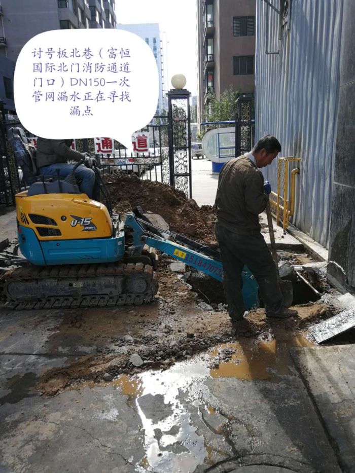 9月29日,管網(wǎng)公司接到辛家營(yíng)供熱分公司搶修通知,騰飛南路如意廣場(chǎng)環(huán)形路口北側東綠化帶中發(fā)現一處冒水現象。管網(wǎng)公司領(lǐng)導高度重視,迅即安排人手,查找漏水點(diǎn)。他們憑借豐富的搶修經(jīng)驗,決定采用十字釘,直架設于涵管之上,創(chuàng )造人工作業(yè)通道,根據涵管內水流方向判斷,搶修人員在胸腹部綁上滑板及護具,在DN600熱力管道中向西滑行50米左右,終于發(fā)現了漏水點(diǎn)。為了給供暖投運工作贏(yíng)取時(shí)間,參與搶修的20余人輪班作業(yè),連續奮戰7個(gè)晝夜,10月6日,圓滿(mǎn)完成搶修任務(wù)。