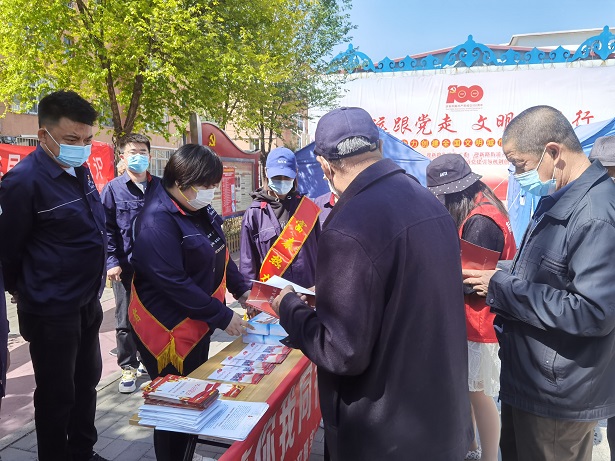 活動(dòng)現場(chǎng),廣大黨員向社區居民發(fā)放了《內蒙古自治區促進(jìn)民族團結進(jìn)步條例》等宣傳資料,并通過(guò)懸掛橫幅、設立宣傳臺、發(fā)放宣傳資料、主題宣講等多種形式,大力宣傳民族政策、法律法規以及民族團結基本知識,加深了社區居民對民族政策及法律法規的認識,進(jìn)一步凝聚了民族團結進(jìn)步正能量,為推進(jìn)民族團結進(jìn)步工作創(chuàng )新發(fā)展起到了積極作用。